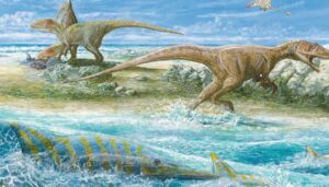 Entre -200 millions d’années et -145 millions d’années s’étale une période appelée le Jurassique. Durant la première moitié, nommée Jurassique Inférieur, de nombreuses espèces de dinosaures se développent. Ils sont d’une taille raisonnable (jusqu’à 6 mètres de long et 400 kg pour le Crylophosaurus, par exemple) comparée à celle des